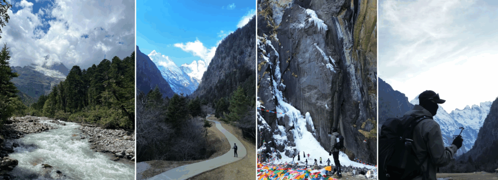 Those still energetic follow the guide to the Sacred Waterfall—an essential point on Meili’s inner kora (pilgrimage circuit). Local belief: circling three times may wash away sins and gain the mountain’s protection. Compared with Ice Lake, this path is noticeably easier.