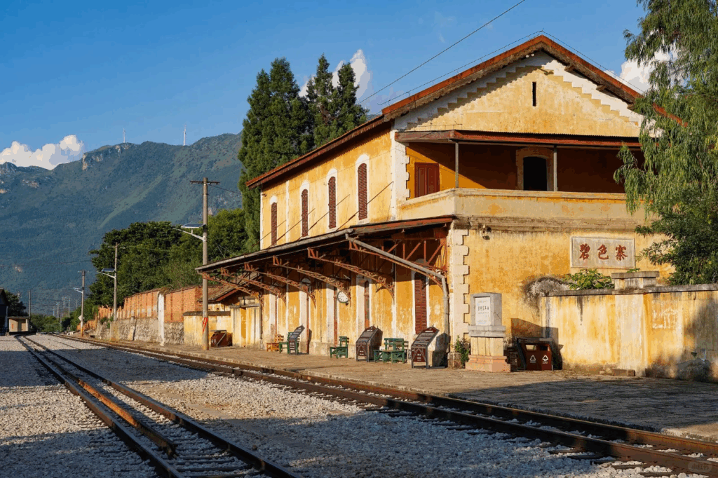 Continue south to Bisezhai Railway Station, once a “special-class” station on the historic Yunnan–Vietnam Railway—briefly a bustling hub. Guided walk: weathered French-style facades, relics of colonial engineering, and stories of cross-border trade and wartime passages.