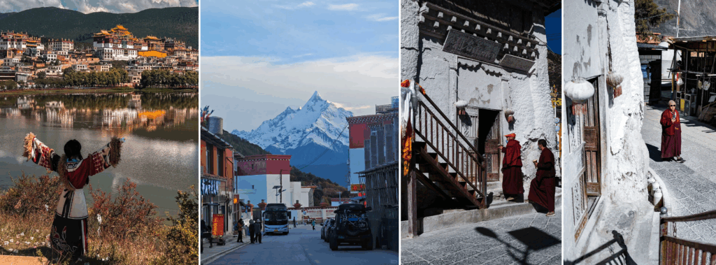A culturally and spiritually resonant day: grand monastery architecture, Tibetan home hospitality, symbolic pre‑pilgrimage blessing, and first encounter with the line of Meili’s Thirteen Peaks.