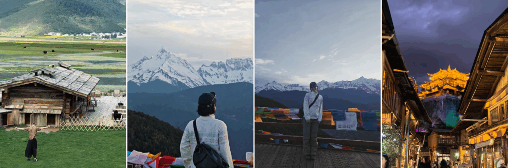 Early alpine wake-up for the famed Meili “sunrise golden peaks” phenomenon, followed by a short-format pilgrimage-style hike segment, then return toward Shangri-La for wetland afternoon tea, farewell dinner, and evening exploration of an old Tibetan town.